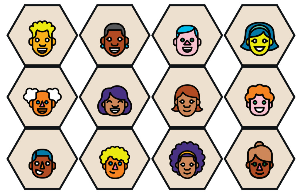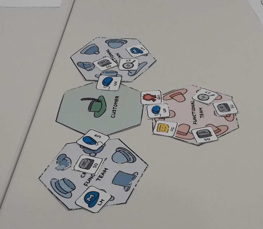 - Each hexagonal figure represents a functional team that only has people with the same role or a multifunctional team that has people with different roles.
